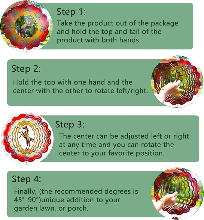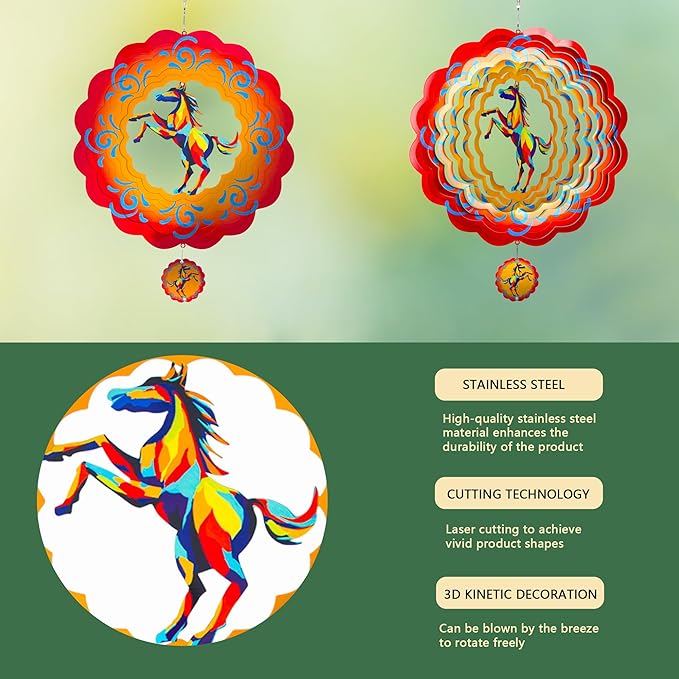 - 【Product introduction】: This 3D wind spinner is made of 12 inches and made of high-quality stainless steel. which adopts cutting technology and PUV printing to achieve a vivid horse shape.