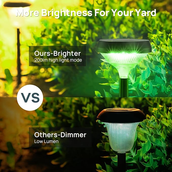 - 【Super Bright & Widely to Use】RGB solar pathway lights can produce up to 200lm brightness, brightness diameter range of up to 2m. Perfect for decorating your garden, landscape, path, yard, patio, or driveway during Halloween & Christmas