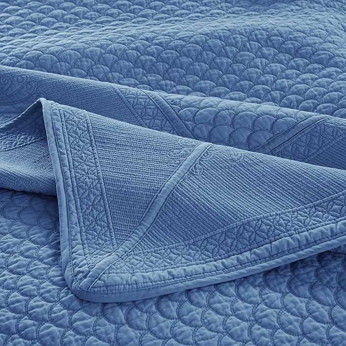 MarCielo 3-Piece 100% Cotton Oversized Bedspread Lightweight Quilt Coverlet Embroidery Farmhouse Bedding Set (TM Midtone Blue, Oversized Queen (100"x106"))