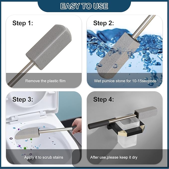 - Versatile Cleaning Tool:This extra long handle pumice stone powerfully cleans stain and hard water rings.Our pumice stone not only great for toilet bowls,also works on tiles,bbq grill,bath tubs and ceramic surfaces