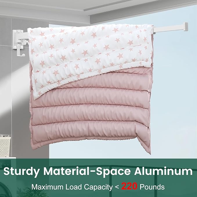 - ✅ Sturdy & Hold Up to 220 LBS -- Our clothes drying rack is perfect for laundry room, balcony, bathroom or bedroom. Through multiple tests, the maximum capacity can be up to 220 Lbs, allowing you to hang a lot of clothes. Adjust it to catch more sunshine and breeze by 360° rotating hooks. Provide you more convenient in your daily life.