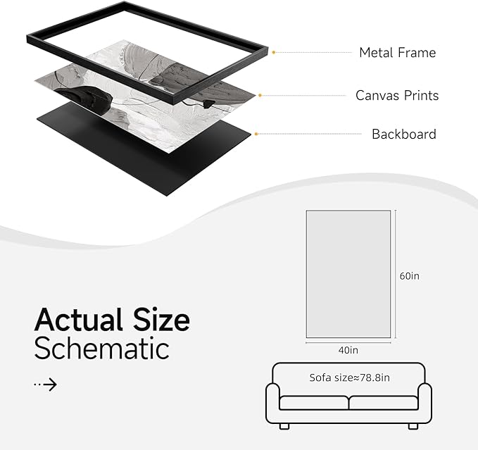 - [Framed Wall Art]: A large framed black white and gray abstract canvas vertical wall art measuring 40x60 inches, each painting with a sturdy, rust-resistant frame