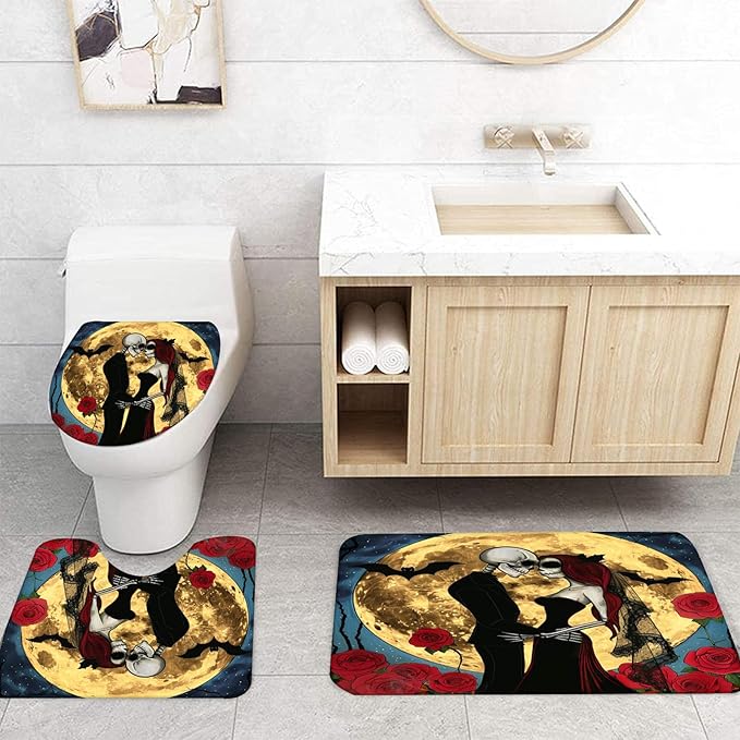 - 🛀 【Premium Material 】Halloween Decorations are made of 100% polyester fabric,which has weight hem and great waterproof effect, eco-friendly. Bath rugs and U-shape bath mats are made of flannel, soft and almost odorless.