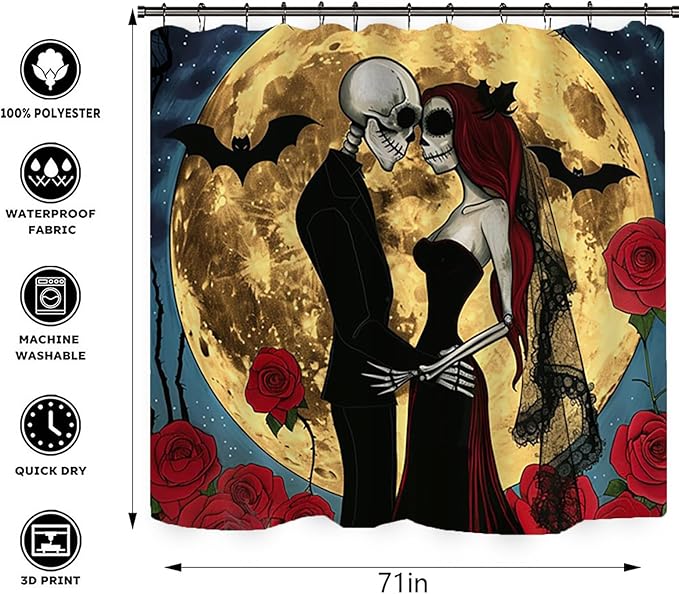 - 🛀 【 Easy to install and Washable】Durable halloween bathroom decor accessory sets with 12 pcs rustproof metal gromments and free strong hanging rings come for you to install easily; The nightmare before christmas bathroom was hand wash or machine wash in cold water Do not bleach ,iron or tumble dry