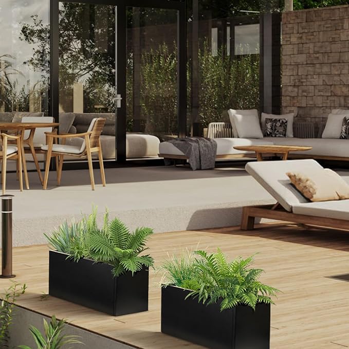 - [ Black Rectangular Planter] Galvanized planter box is made of galvanized steel with black powder coating. Galvanized Steel Planter is wear-resistant, corrosion-resistant and long lifetime.