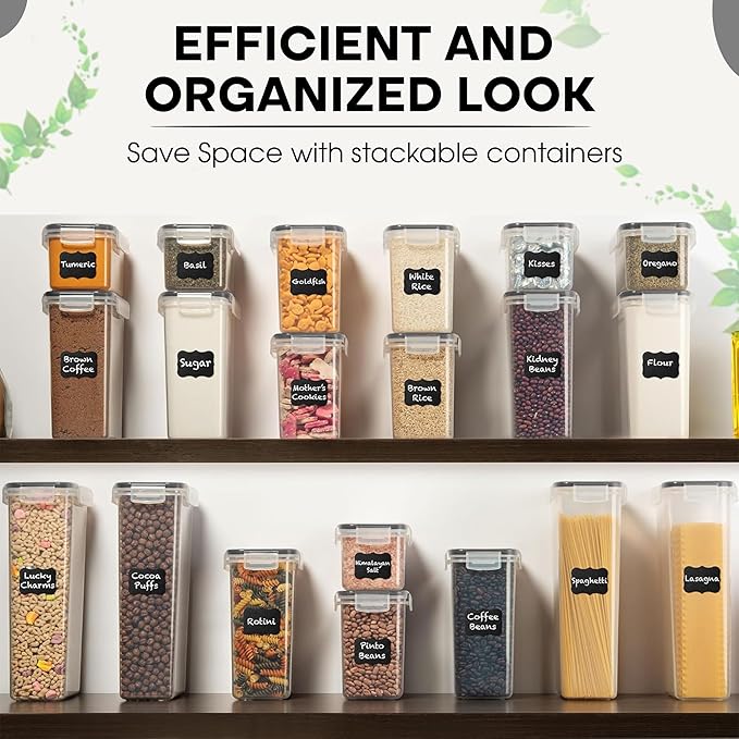 - ๐๐๐ฅ๐ข๐๐๐ฅ๐ ๐๐ข๐ซ๐ญ๐ข๐ ๐ก๐ญ ๐๐จ๐ง๐ญ๐๐ข๐ง๐๐ซ๐ฌ: With 4-sided locking lids, these food storage containers with lids preserve freshness, making them perfect for cereal containers, pantry organizer, and food containers with lids. Protect your food from moisture and keep your kitchen storage neat and efficient.