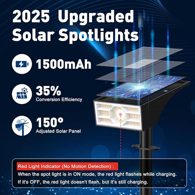 - ใ๐๐% ๐๐ข๐ ๐ก-๐๐๐๐ข๐๐ข๐๐ง๐๐ฒ ๐๐๐ซ๐ ๐๐ซ ๐๐จ๐ฅ๐๐ซ ๐๐๐ง๐๐ฅใSolar garden lights feature larger monocrystalline silicon panels with a reflective PET film, achieving up to 35% energy conversion efficiency. With automatic charging during the day and lighting up at dusk, they provide effortless operation. Simply switch to โOn Modeโ when using them for the first time.