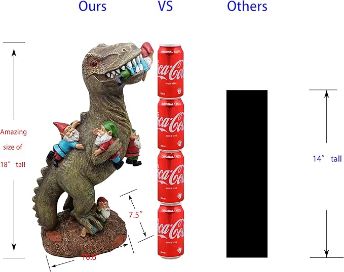 - Vivid. This statue is well-made and good-looking, even the gnomes are meticulously crafted, while other products are blurred. The dinosaur is strong. The whole statue is solid.