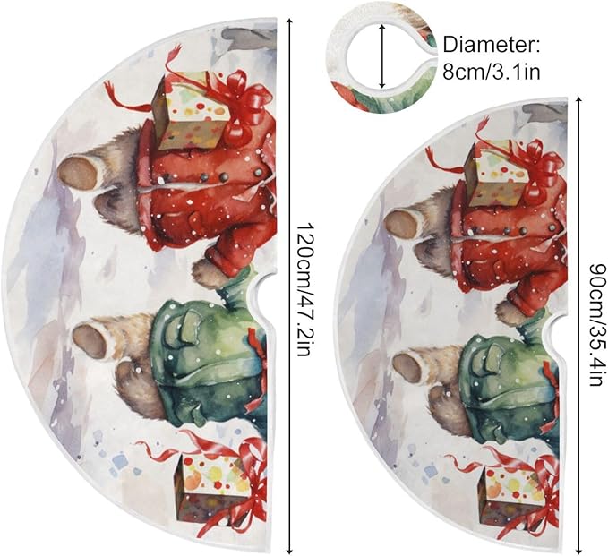 36 Inch Christmas Rabbit Tree Skirt for New Year Party Decorations and Xmas Tree Mat