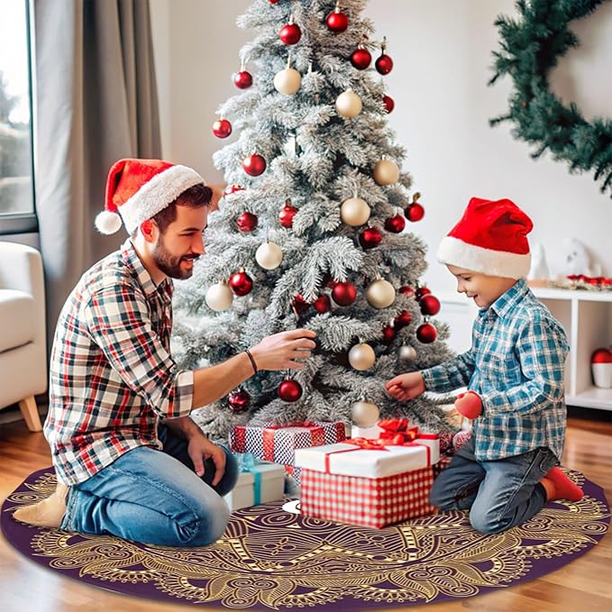 36" Dark Amethyst Purple Mandala Star Christmas Tree Skirt Tree Mat Base Cover for Xmas Festive Holiday Party Decoration Ornaments