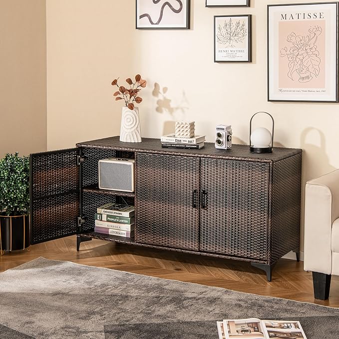 - 3-Door Customized Storage: Equipped with 3 removable shelves, this rattan storage container can be customized to fit your different belongings. Moreover, 3 doors allow you to access your stored items with ease.