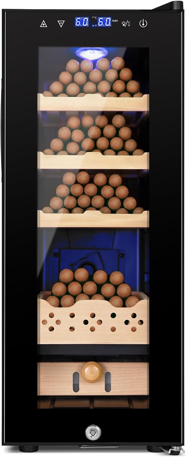- Capacious Elegance: With a large 35L capacity accommodating up to 250 rolls, this desktop electric humidor is your ultimate storage solution for a robust collection.