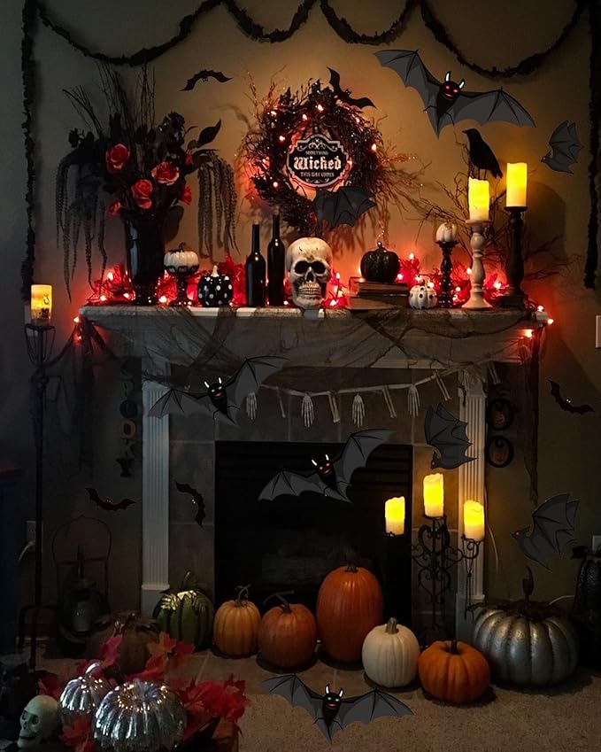 - Halloween Decorations: 140PCS Bats wall decor Halloween decor for your Halloween party decoration supplies. Fluttering Halloween bats stickers will set a scene indoor or outdoor during October, wow your guests and trick-or-treaters with these amazing Halloween bat decor!