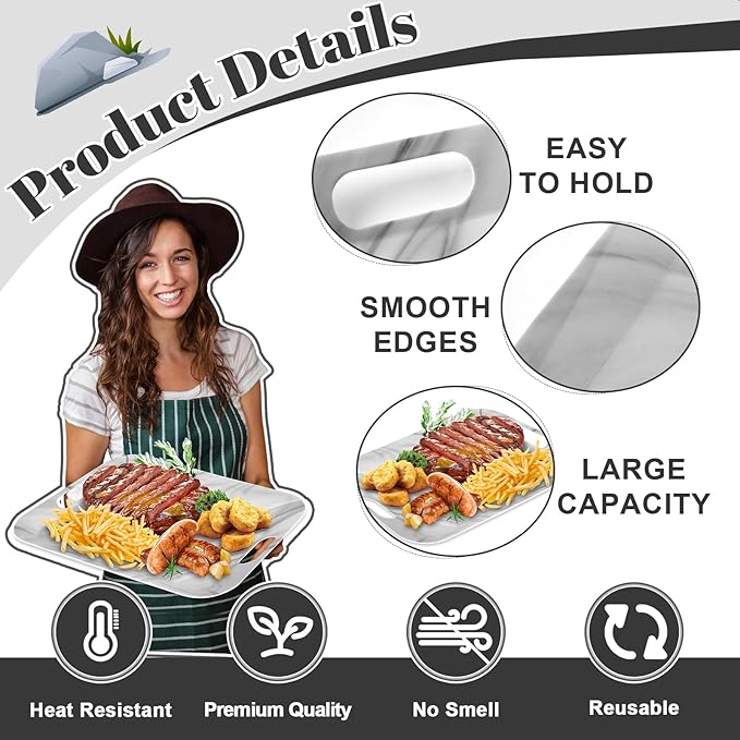 - Unique design: The standout feature of this serving tray is its stunning white and grey marble print. This elegant pattern mimics the look of real marble, adding a touch of luxury to your dining setup. The large serving platter’s sleek and modern design complements any table setting, making it suitable for all occasions, from everyday meals to special celebrations.