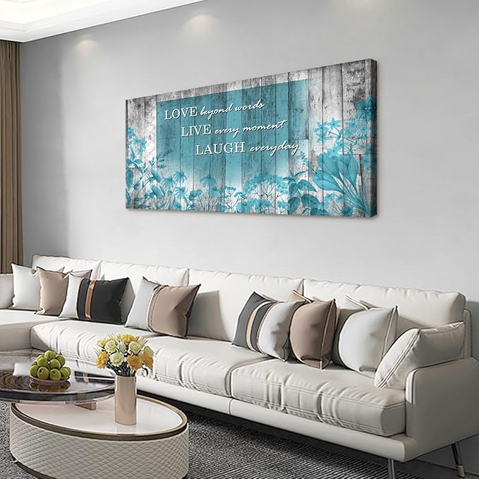 Cao Gen Decor Art S07062 Wall Art Motivational Quotes Canvas Prints 1 Panels Teal Flowers Abstract Pictures Paintings Stretched and Framed for Living Room Bedroom Kicthen Office Artwork