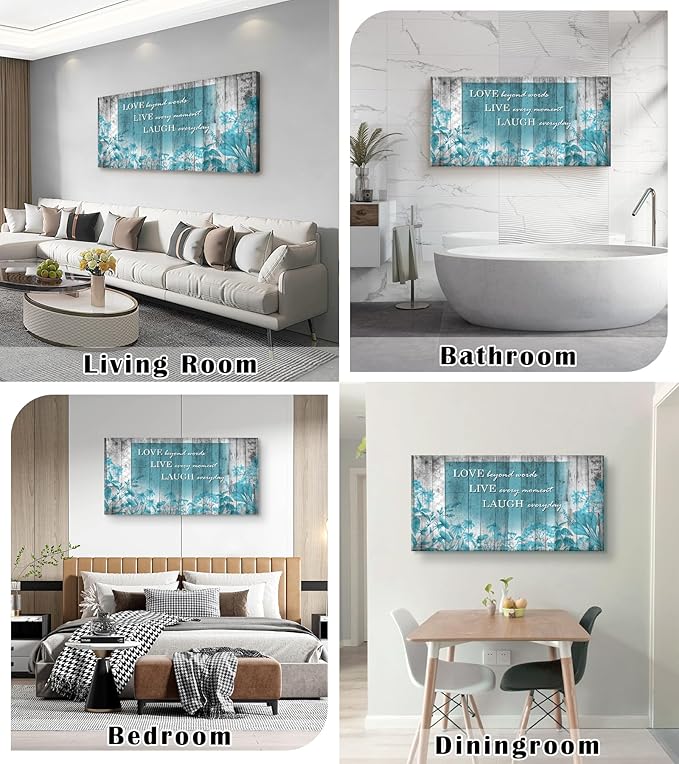 Cao Gen Decor Art S07050 Wall Art Motivational Quotes Canvas Prints 1 Panels Teal Flowers Abstract Pictures Paintings Stretched and Framed for Living Room Bedroom Kicthen Office Artwork