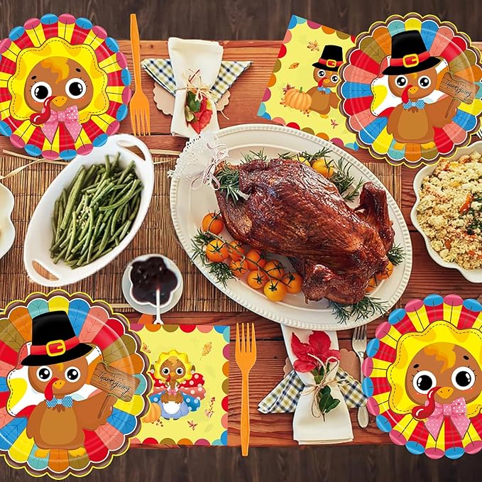 - Thanksgiving Party Decoration Set: You will receive totally 96 piece turkey theme party supplies, including 24 Thanksgiving plate 9inch,24 pieces turkey plate 7inch,24 pieces Thanksgiving napkin and 24pcs forks,The Thanksgiving party favors are enough to decorate your party