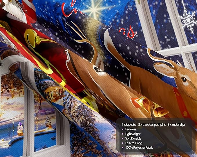 QGHOT Christmas Window Tapestry Wall Hanging Christmas Backdrop Xmas Winter Window Wall Decor Santa Claus Tapestries for Bedroom Living Room Dorm Holiday Party Decoration