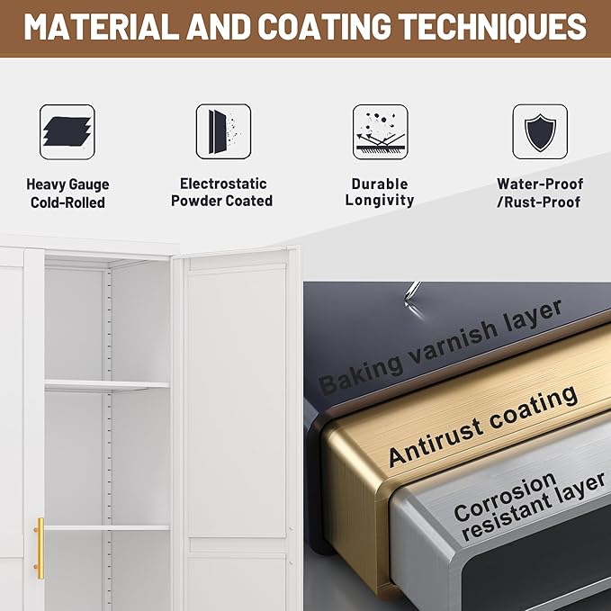 - High-quality Metal Construction: Our storage cabinet is made of premium metal materials, ensuring durability and sturdiness. With its sturdy construction, you can rely on this cabinet to securely store your items.