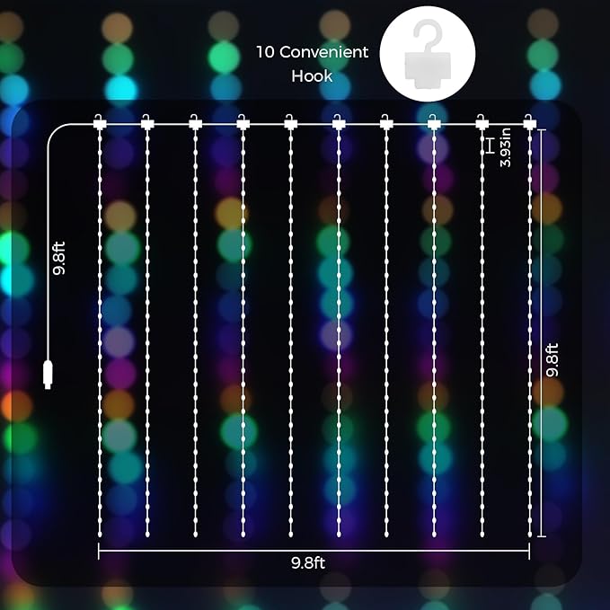 - Color Chainging Curtain Lights:Experience our 9.8 x 9.8 ft USB powered window curtain lights with the latest color-changing technology, offering different color choice to match any mood or occasion.