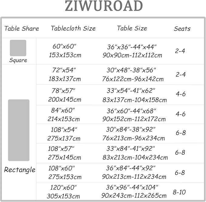 - Different Size: This rectangle velvet table cloth measures 60 x 84 inches. Suitable for rectangular tables measuring 60 to 68 inches in length and 36 to 44 inches in width (8-12inch drop), 6-8 seats. Friendly Reminder: Please measure your table dimension for choosing the appropriate table cloth size