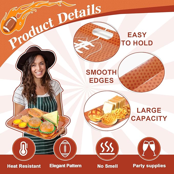 - Package includes:Our package contains 2pcs football melamine tray measures 16.1 X 11.1 inch.Football melamine serving tray has ample capacity to hold a variety of foods, snacks, and desserts, making it perfect for all your party needs.