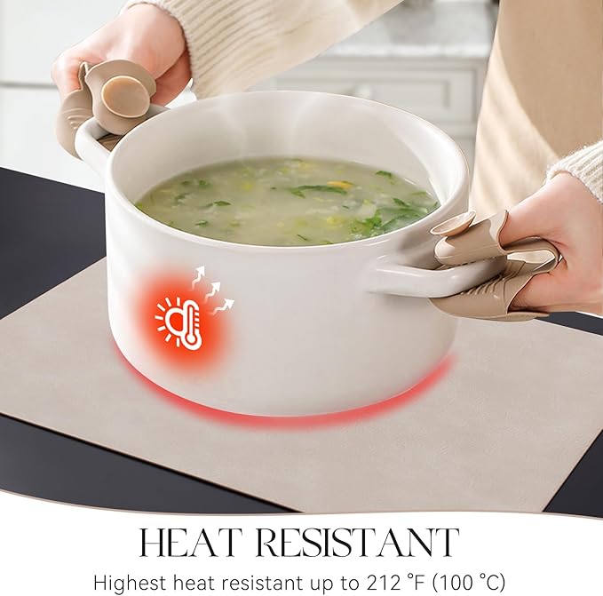 - PROTECT YOUR TABLE: Our placemats are 2mm thick and heat-resistant up to 212℉/100℃, which can protect your table from high temperatures and reduces noise from plates and flatware. It is an excellent choice to protect protect the surface of your dining table from hot dishes and liquid spills.