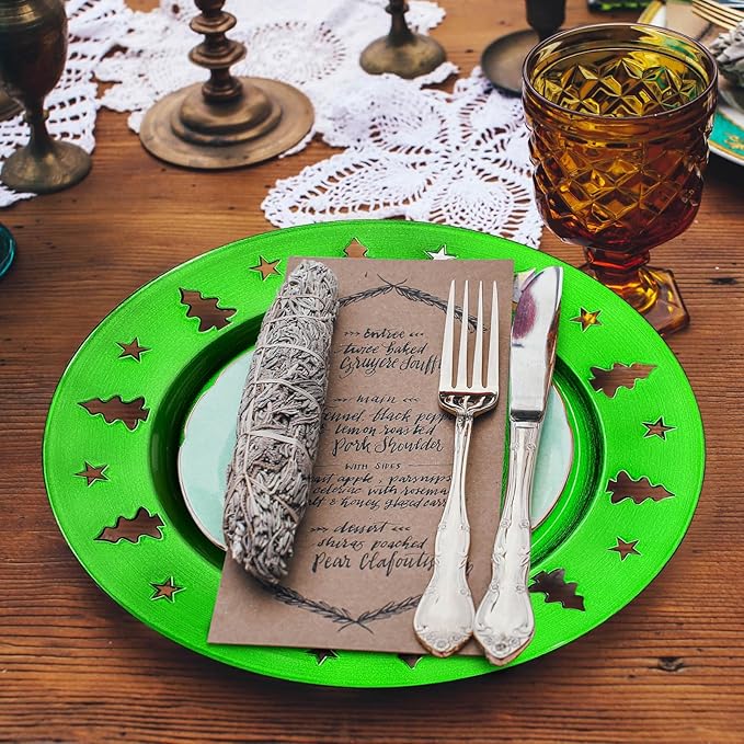 - Elegant Design for Holiday Occasions: Our Christmas charger plates measure 13 inches in diameter and are perfect as a decorative centerpiece for Christmas, New Year's, weddings and parties, instantly elevating the ambiance of your table décor with their vibrant colors and sculpted edges.