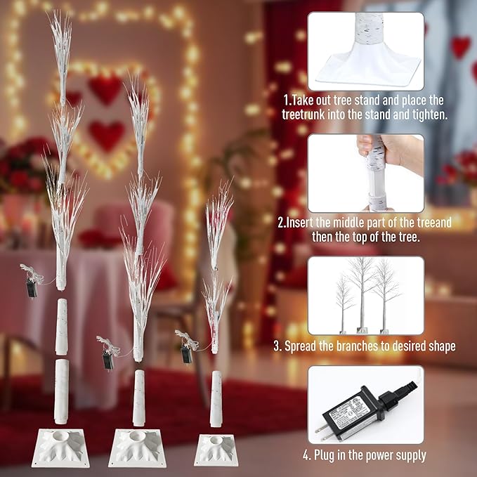- Versatile Birch Tree Set in 3 Sizes: This Aoycocr Lighted Birch Tree Set includes 4FT, 5FT, and 6FT trees, offering the perfect size for any space. With 4ft 64LED 5ft 81LED 6ft 120LED warm white LED lights, each tree creates a cozy and magical atmosphere, ideal for holiday décor, winter settings, and year-round charm.