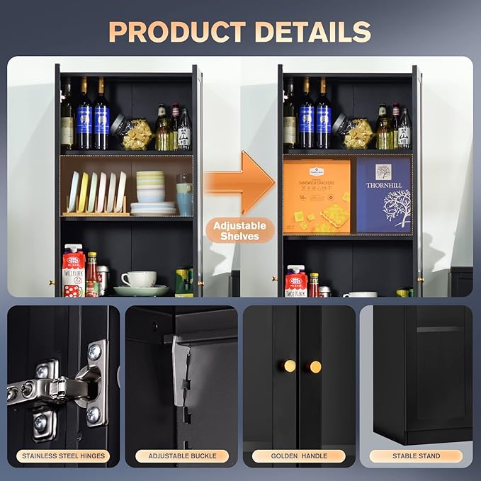 • Multifunctional Design Storage Cabinet: Each door with rubber buffers, reduces the noise when closing the door, and avoid the door from scratches. The back of the metal cabinet is equipped with two mounting holes for easy fixation to the wall to prevent tipping over,and providing added security for your home. The waist and bottom of the back panel have reinforcement ribs, further increasing the strength of the cabinet. The opening and closing device of the door is a silent shock absorbing cushion hinge. Can also be used to adjust the door spacing and the distance between the door and the cabinet.