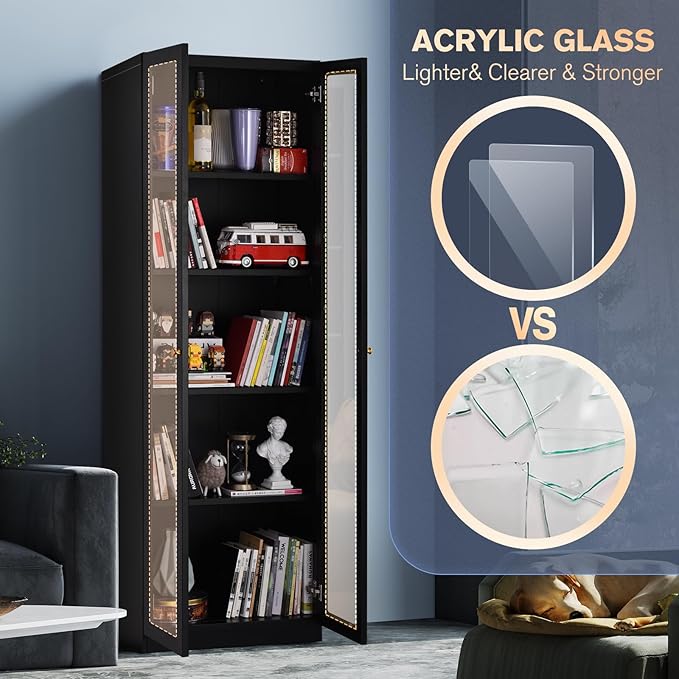 • Display Cabinet with Acrylic Doors: The 2 doors of this curio cabinets with Acrylic, so that the items inside are clear at a glance, easier and fast for you to find files, medicine,et. Warm Tips: Acrylic doors come with a peel-off protector.