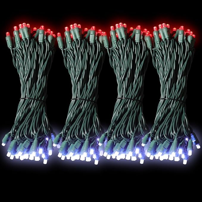 50L String Lights, LED Christmas Lights, 6" SPACING,Green Wire, Red and White