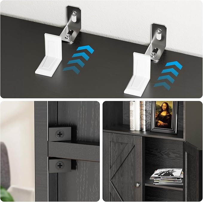 - Safe, Stable & Easy to Assemble This tall bookshelf with doors includes wall anchors for added safety—ideal for family homes. Assembly is quick with included parts and step-by-step instructions, making it a hassle-free addition to your organization storage setup.