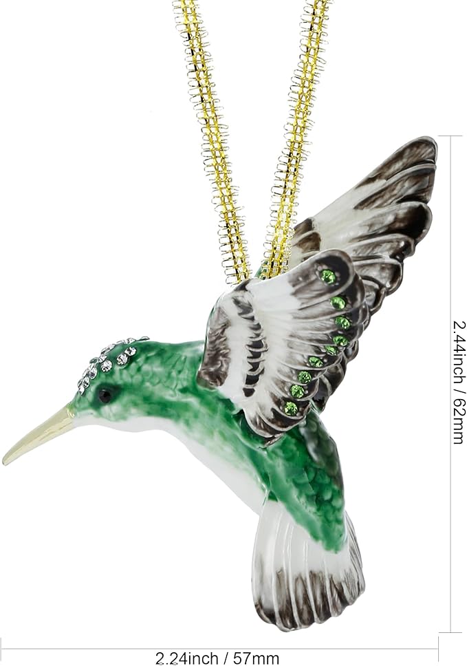 Hand Painted Enamel Hanging Hummingbird Ornament, Elegant Decorative Hanging Ornaments, Christmas Figurine Collectible Keepsake Home Decor, for Christmas Tree, Windows, Satin Ribbon (Hummingbird)