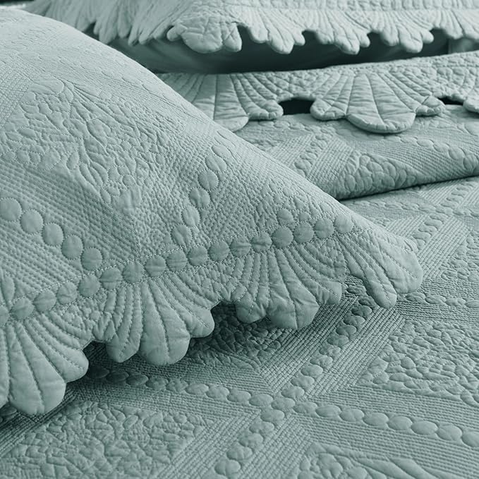 MarCielo 3-Piece 100% Cotton Oversized Bedspread Lightweight Quilt Coverlet Embroidery Farmhouse Bedding Set (Tk Aqua Green, Oversized King (118"x106"))