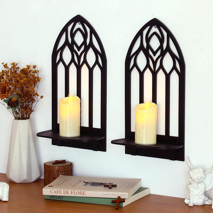 - Gothic Sconces Wall Decor Set of 2: Our gothic decor features exquisite patterns outlined with elegant lines, designed in a window shape with gothic style. Measuring 12.9x6.4 inches, our sconces wall decor set of 2 will be the perfect addition to your gothic home decor.