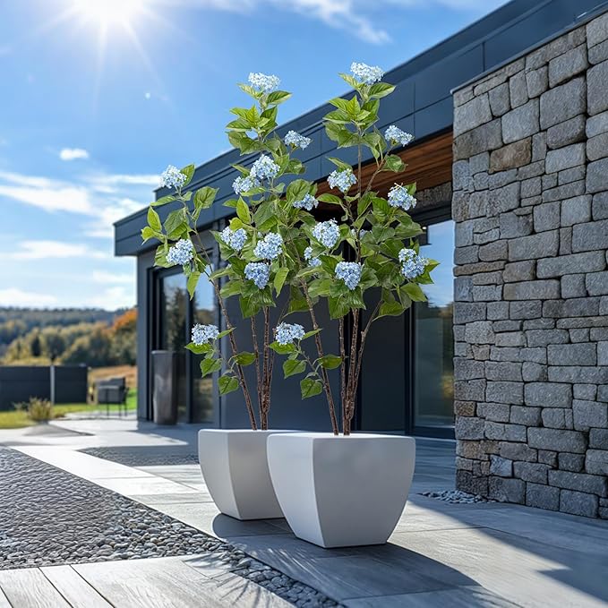 - 【ECONOMICAL】:The artificial tree whole tree has 4 branches, each branch is labeled , easy to install. The whole tree has 12 flowers, the flowers are made of silk fabric and the leaves are made of touch texture, easy to clean.artificial trees come in two colors, blue hydrangea and white hydrangea. These are tall indoor artificial plant decorations