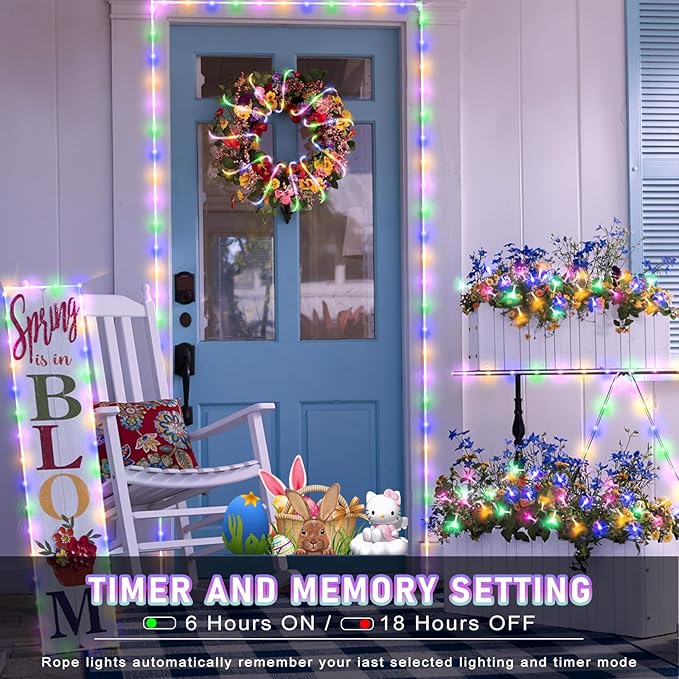 - 【Connectable Rope Lights Outdoor】- Our upgraded led rope lights feature has 66ft lighting length, 6.6ft lead wire, total 72.6ft length. And the spacing between each LED bead is 4 inches, the light is bright but not harsh. The rope lights indoor can be connected end to end up to 5 sets to illuminate your home and create a warm and romantic atmosphere!