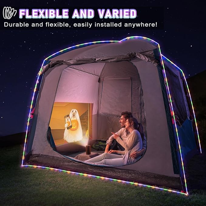 - 【IP65 Waterproof 】- IP65 Waterproof design, they are suitable for all weather use, remaining bright and sparkling even during strong rain and windy days. The outdoor rope lights is ideal for year-round outdoor decor and can illuminate gazebos, canopy, corridors, gardens, and patios. But please note the plug is not waterproof.