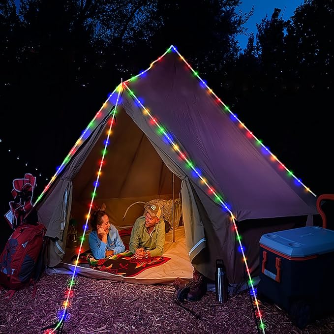 - Waterproof Outdoor String Lights: IP65 Waterproof, they are suitable for all weather use, remaining bright and sparkling even during strong rain and windy days. The outdoor rope lights is ideal for year-round outdoor decor and can illuminate gazebos, canopy, corridors, gardens, and patios. But please note the plug is not waterproof.