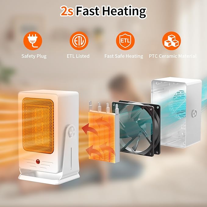 - QUIET OPERATION & COZY COMPANION: The room heater’s optimized air duct design minimizes airflow noise, providing warm comfort without disrupting daily activities—ideal for bedroom use at night, focused work in the office, or studying in the library. For anyone who values both comfort and peace of mind, this small space heater is a must-have. From frosty mornings to chilly evenings, heaters for indoor use reliably meets your personal heating needs, ensuring every space feels cozy and calm.