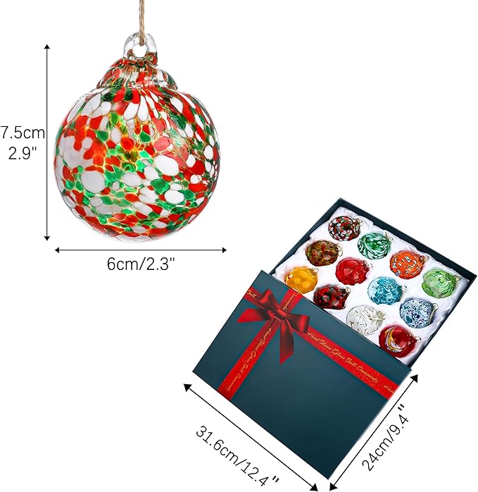 - Glass Gazing Balls:The 12 pcs of Christmas ornament balls are all made of high-quality glass.Each ball is carefully crafted with exquisite details.