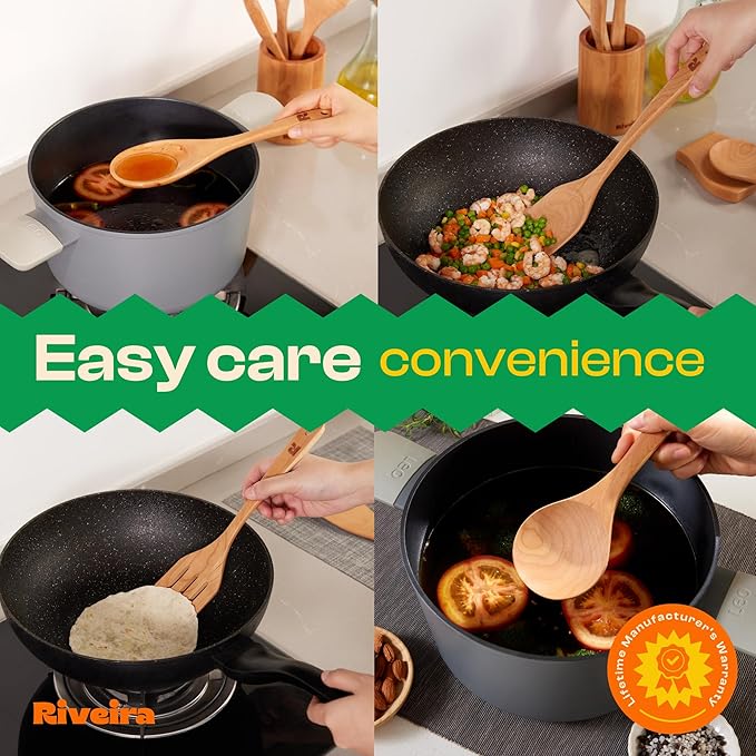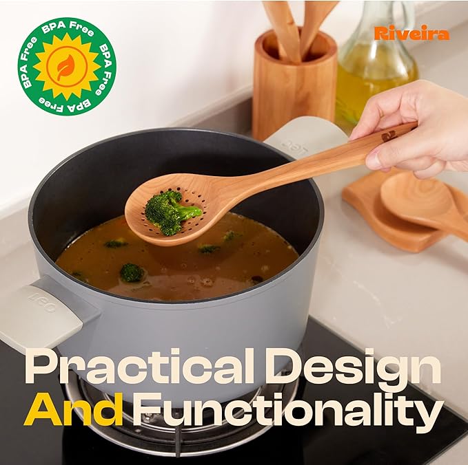 - Versatile and Eco-Friendly Cherry Utensils – Our kitchen utensil and wood spoons are made from environmentally friendly cherry, which is long-lasting and sustainable. The wood cooking utensils set is designed for all cooking styles, offering tools for stirring, serving, and flipping. These wooden utensils for cooking are perfect for non-stick cookware, providing a scratch-free experience. These wood cooking utensils make a great addition to your kitchen.