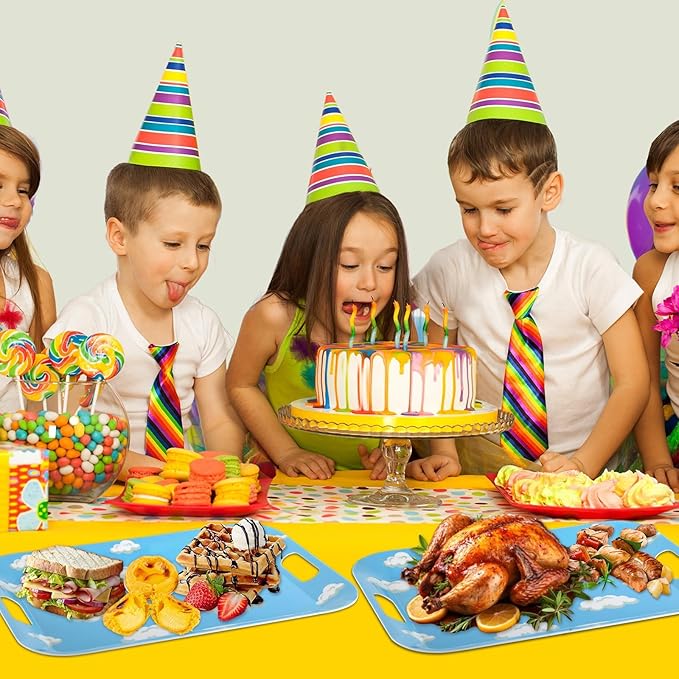 - Versatile serveware: Our blue service trays are ideal for holding appetizers, snacks, desserts, or drinks, stylish and practical for indoor and outdoor dining, picnics, tea breaks, barbecues, camping, games, celebrations,dinner parties. These sky white cloud food tray are not just for food, you can also use them to place decorative items, craft supplies, or as a versatile tray in your entryway. They are versatile pieces that can be used as game-themed party supplies.