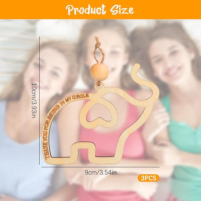 3 PCS Friendship Wooden Elephant Ornament Set, Sisterhood & Best Friends Gift, Christmas Ornament with Story