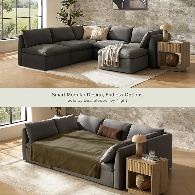 mopio Oversized Modular Sectional Sofa with Fully Removable Covers and Storage, Convertible U, L-Shaped and Sleeper Sectional, Modern Couches with Ottoman Chaise (Stone Gray Fabric, 6 Seats, Sleeper)