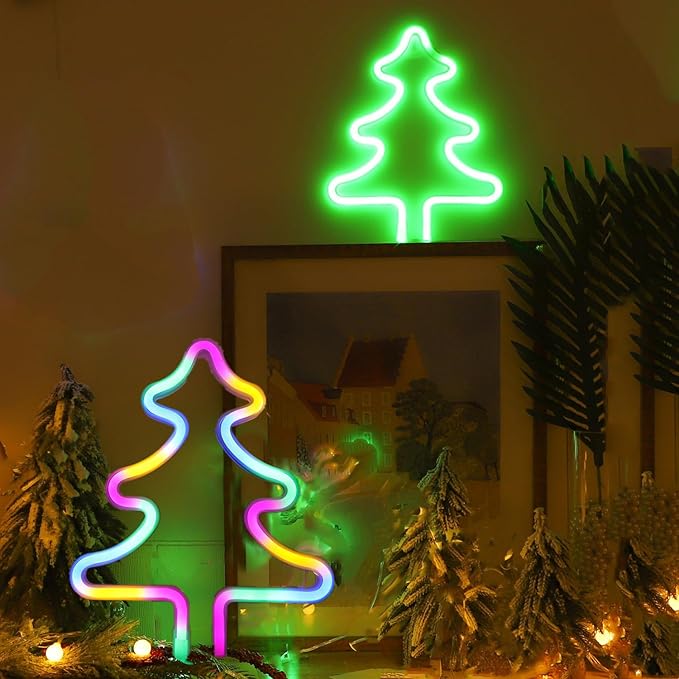 - 【Christmas Decorations】This christmas neon sign can be used not only in the home, but also in rooms, walls, parties, Christmas, clubs, Halloween, festivals, dorms, Windows, shops, barbershops, art galleries, offices, bars, cafes, restaurants, birthday parties, weddings, anniversaries and many other occasions. Is the best gift for children, friends and family!Christmas tree night lamp are very bright and noticeable from far out in the street or window.