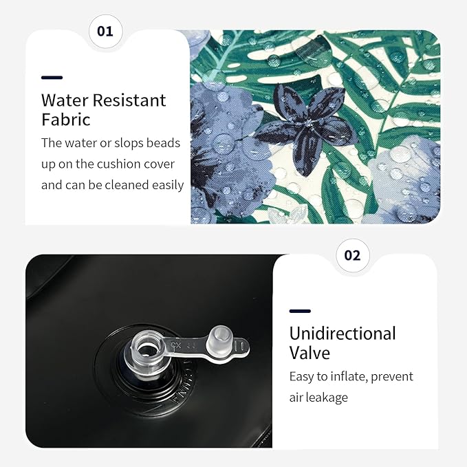 - 【EASY to INFLATE】 - Begin by placing the inflatable component into the cover prior to inflation. Utilize the foot pump to inflate it to approximately two-thirds of its size, then zip the cover halfway. Continue inflating until fully expanded and securely zip it closed. Ensure that the valve is properly sealed
