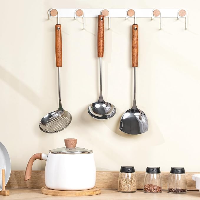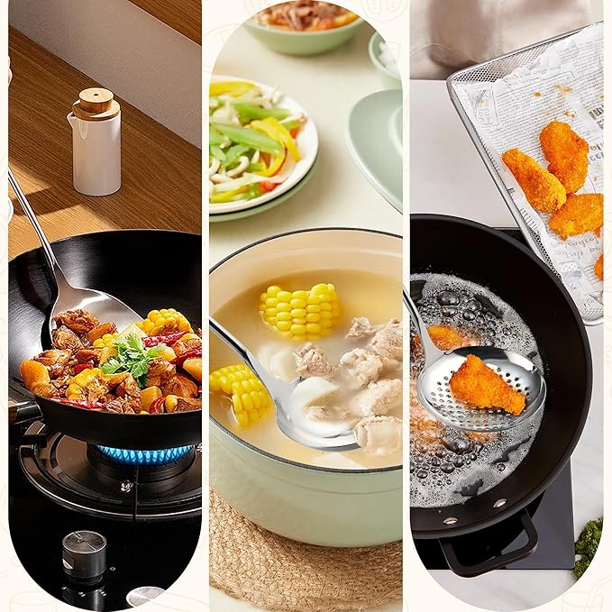 FJNATINH Wok Spatula - Ladle - Skimmer - Stainless Steel Wok Tools,Wok Utensil,Mirror Polished Stainless Steel Cooking Utensils 14.6-15.2" Kitchen Utensils Cookware, Pack of 3