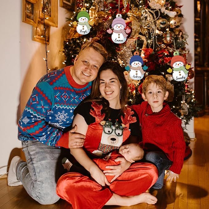 - Personalized Snowman Christmas Ornaments – Add a touch of festive warmth with custom snowman ornaments featuring your family name. Simply click “Customize Now” to create a unique decoration that celebrates Christmas with family and friends, making your tree truly special.
